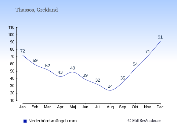 Se klimatdata för Thassos jämfört med klimatet i Sverige.