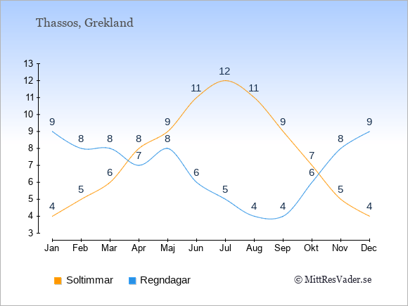 Klimatdata för Thassos, Grekland