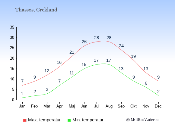 Vädret i EuropaKlimatdata för Grekland Klimatdata för Thassos