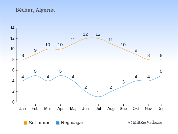 Se klimatdata för Béchar jämfört med klimatet i Sverige.