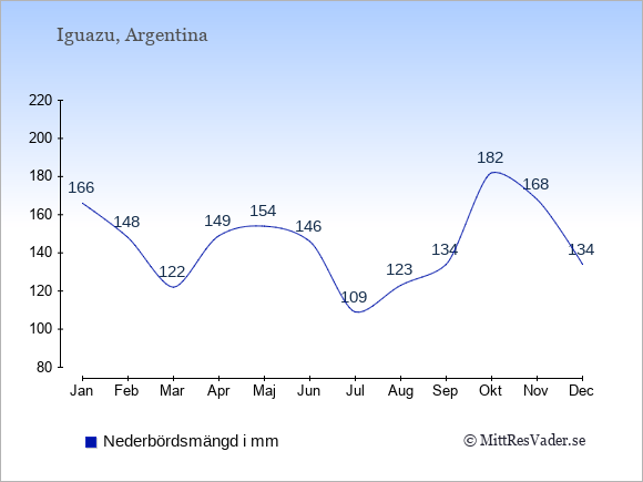 För att se hur vädret vid Iguazu skiljer sig från vädret hemma, kan du också jämföra siffrorna måned för måned med motsvarande siffror för Sverige under samma period här: Iguazus klimat.