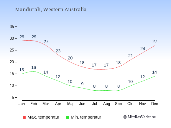 Vädret i OceanienKlimatdata för Australien Klimatdata för Mandurah
