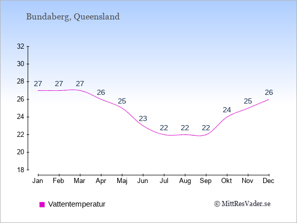 Om du vill veta hur vädret kommer att bli de kommande dagarna, kan du även se en väderprognos för Bundaberg med den aktuella vattentemperatur just nu under: Väder Bundaberg.
