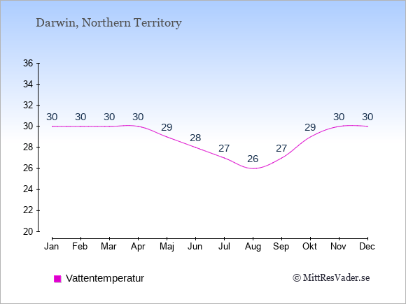 Om du vill veta hur vädret kommer att bli de kommande dagarna, kan du även se en väderprognos för Darwin med den aktuella vattentemperatur just nu under: Väder Darwin.