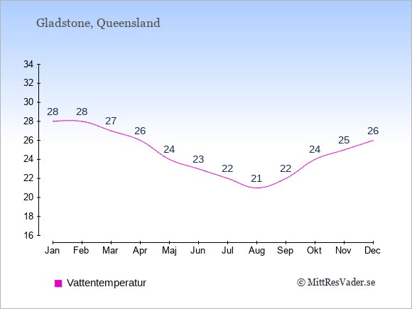Om du vill veta hur vädret kommer att bli de kommande dagarna, kan du även se en väderprognos för Gladstone med den aktuella vattentemperatur just nu under: Väder Gladstone.