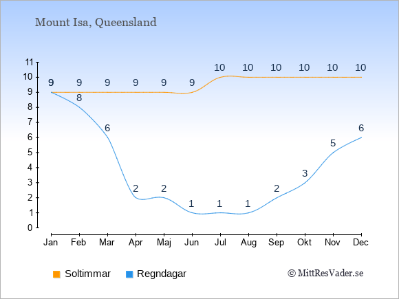 Väder i Mount Isa: Soltimmar och regndagar