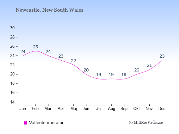 För att se hur vädret i Newcastle skiljer sig från vädret hemma, kan du också jämföra siffrorna måned för måned med motsvarande siffror för Sverige under samma period här: Newcastles klimat.
