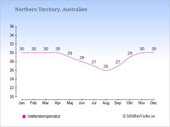 Om du vill veta hur vädret kommer att bli de kommande dagarna, kan du även se en väderprognos för Northern Territory med den aktuella vattentemperatur just nu under: Väder Northern Territory.