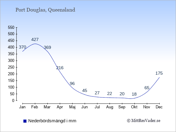 För att se hur vädret i Port Douglas skiljer sig från vädret hemma, kan du också jämföra siffrorna måned för måned med motsvarande siffror för Sverige under samma period här: Port Douglas klimat.