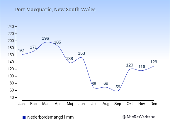 Väder i Port Macquarie: Soltimmar och regndagar