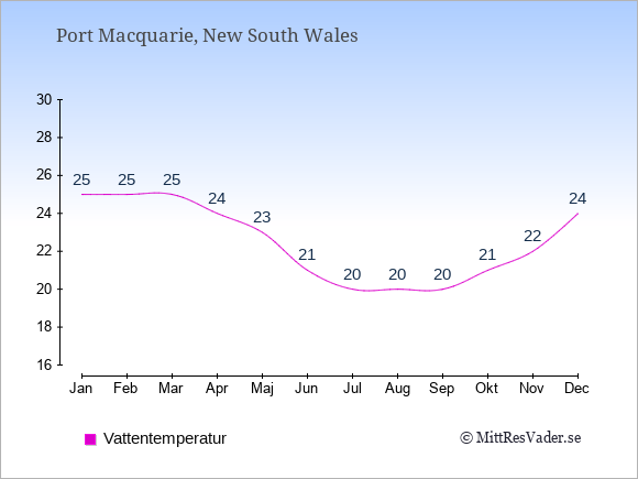 Om du vill veta hur vädret kommer att bli de kommande dagarna, kan du även se en väderprognos för Port Macquarie med den aktuella vattentemperatur just nu under: Väder Port Macquarie.