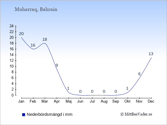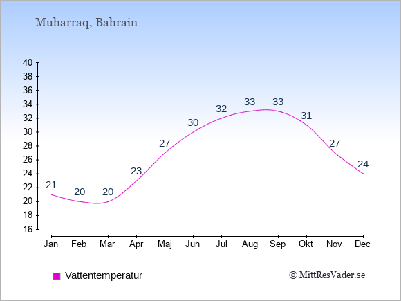 För att se hur vädret i Muharraq skiljer sig från vädret hemma, kan du också jämföra siffrorna måned för måned med motsvarande siffror för Sverige under samma period här: Muharraqs klimat.