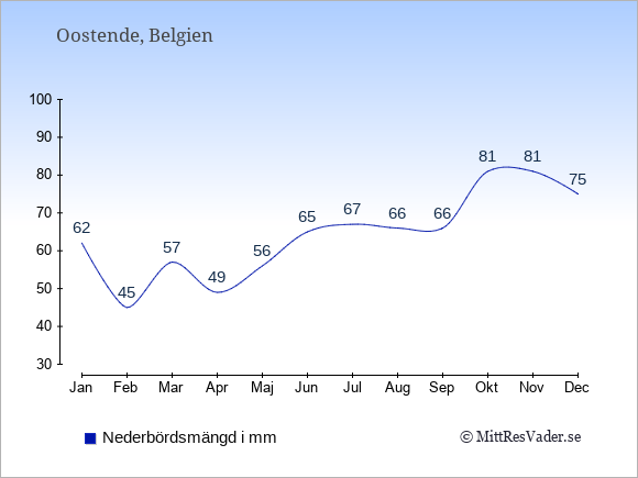 Se även vädret i Oostende året runt uten klimatuppgifter för Stockholm.
