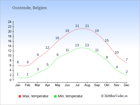 Vädret i EuropaKlimatdata för Belgien Klimatdata för Oostende