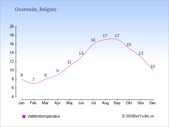 Om du vill veta hur vädret kommer att bli de kommande dagarna, kan du också se en väderprognos för Oostende med den aktuella vattentemperatur just nu under: Väder Oostende.