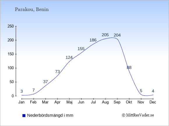 För att se hur vädret i Parakou skiljer sig från vädret hemma, kan du också jämföra siffrorna måned för måned med motsvarande siffror för Sverige under samma period här: Parakous klimat.