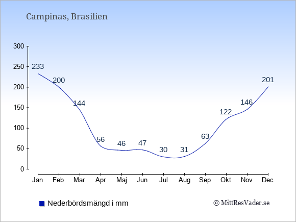 För att se hur vädret i Campinas skiljer sig från vädret hemma, kan du också jämföra siffrorna måned för måned med motsvarande siffror för Sverige under samma period här: Campinas klimat.