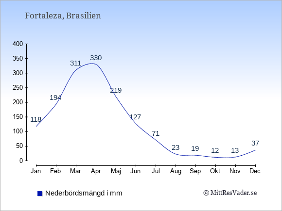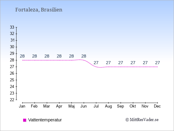 För att se hur vädret i Fortaleza skiljer sig från vädret hemma, kan du också jämföra siffrorna måned för måned med motsvarande siffror för Sverige under samma period här: Fortalezas klimat.