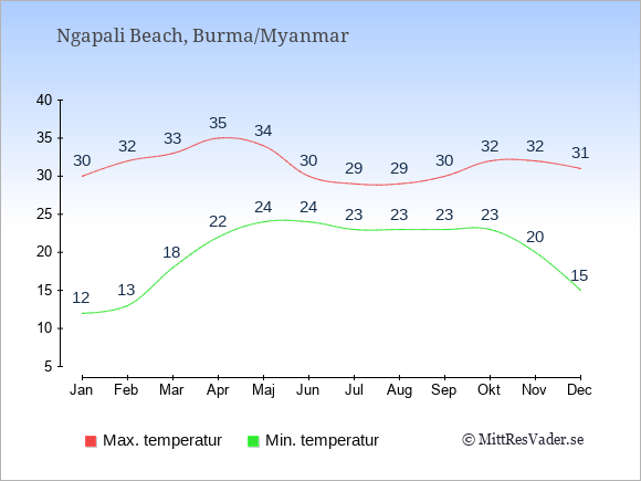 Vädret i AsienKlimatdata för Burma/Myanmar Klimatdata för Ngapali Beach