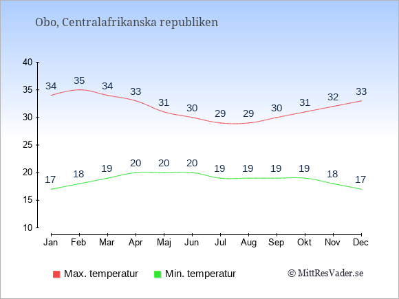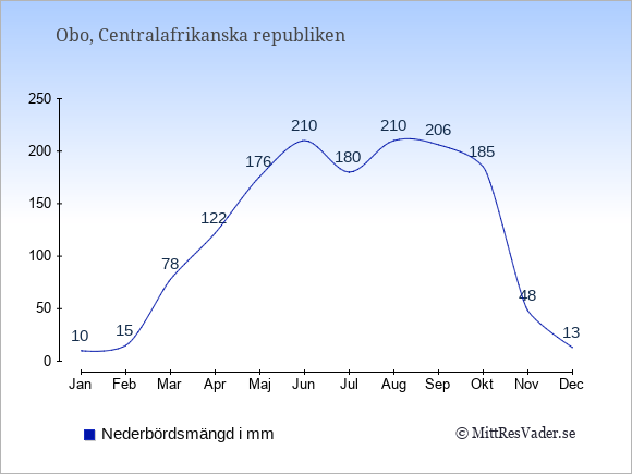 Genomsnittligt väder i Obo, Centralafrikanska republiken