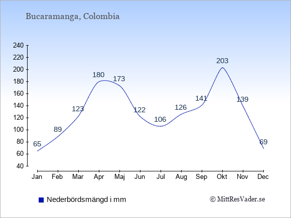 För att se hur vädret i Bucaramanga skiljer sig från vädret hemma, kan du också jämföra siffrorna måned för måned med motsvarande siffror för Sverige under samma period här: Bucaramangas klimat.