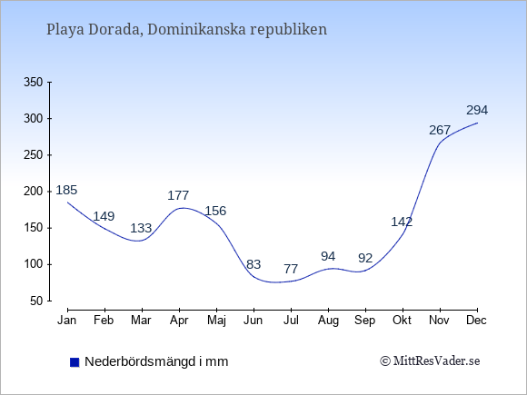 För att se hur vädret i Playa Dorada skiljer sig från vädret hemma, kan du också jämföra siffrorna måned för måned med motsvarande siffror för Sverige under samma period här: Playa Doradas klimat.