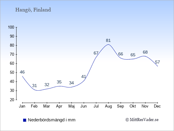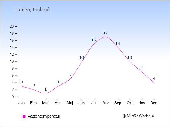 För att se hur vädret i Hangö skiljer sig från vädret hemma, kan du också jämföra siffrorna måned för måned med motsvarande siffror för Sverige under samma period här: Hangös klimat.
