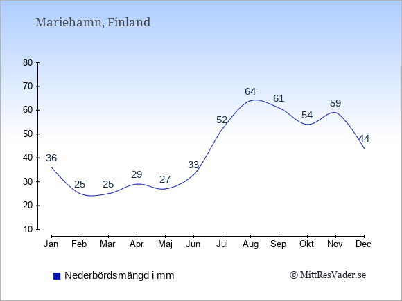 Genomsnittligt väder i Mariehamn, Finland