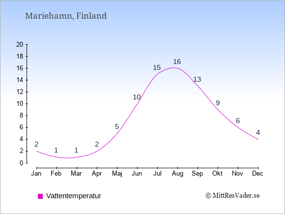 Få en överblick över vädret i Mariehamn månad för månad med temperaturer, vattentemperatur, soltimmar och nederbörd.