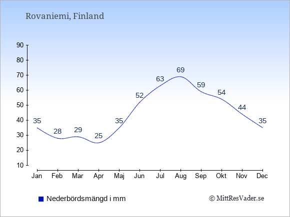 För att se hur vädret i Rovaniemi skiljer sig från vädret hemma, kan du också jämföra siffrorna måned för måned med motsvarande siffror för Sverige under samma period här: Rovaniemis klimat.
