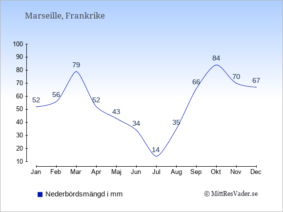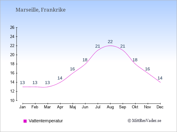För att se hur vädret i Marseille skiljer sig från vädret hemma, kan du också jämföra siffrorna måned för måned med motsvarande siffror för Sverige under samma period här: Marseilles klimat.