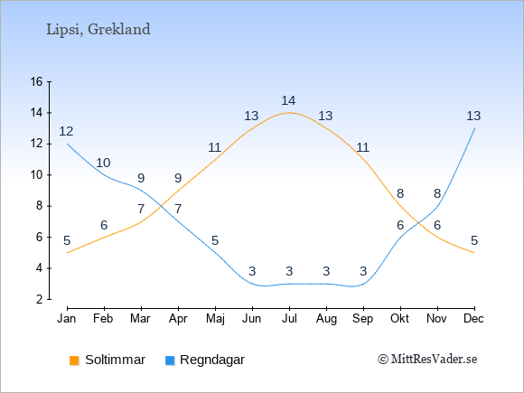 Lipsi: Klimat och historiskt väderJämfört med Sverige