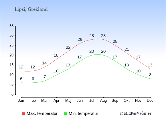 Se klimatdata för Lipsi jämfört med klimatet i Sverige.