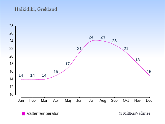 För att se hur vädret på Halkidiki skiljer sig från vädret hemma, kan du också jämföra siffrorna måned för måned med motsvarande siffror för Sverige under samma period här: Halkidikis klimat.