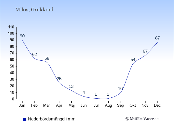 Vädret på Milos är oftast bäst i de månader där det finns många soltimmar och få dagars nederbörd.