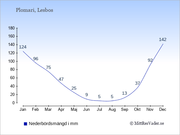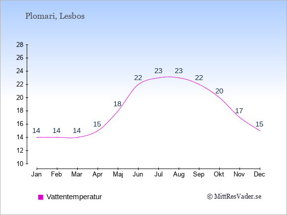För att se hur vädret i Plomari skiljer sig från vädret hemma, kan du också jämföra siffrorna måned för måned med motsvarande siffror för Sverige under samma period här: Plomaris klimat.