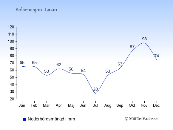 Genomsnittligt väder vid Bolsenasjön, Lazio