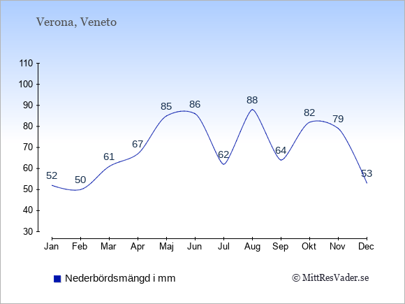 Genomsnittligt väder i Verona, Veneto