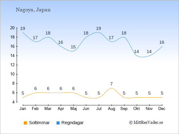 Väder i Nagoya: Soltimmar och regndagar