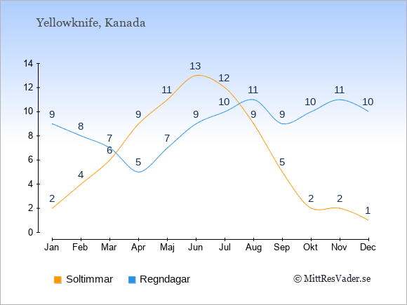 och antalet regndagar i Yellowknife under en viss månad jämfört med Stockholm.