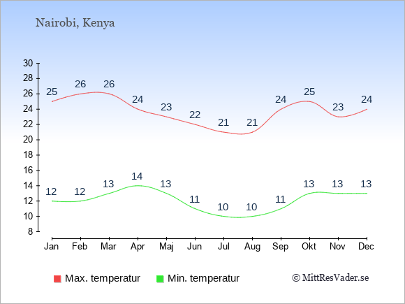 Klimatdata för Nairobi, Kenya