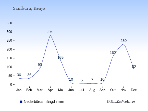 För att se hur vädret i Samburu skiljer sig från vädret hemma, kan du också jämföra siffrorna måned för måned med motsvarande siffror för Sverige under samma period här: Samburus klimat.