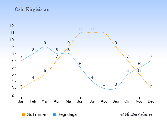 Se klimatdata för Osh jämfört med klimatet i Sverige.