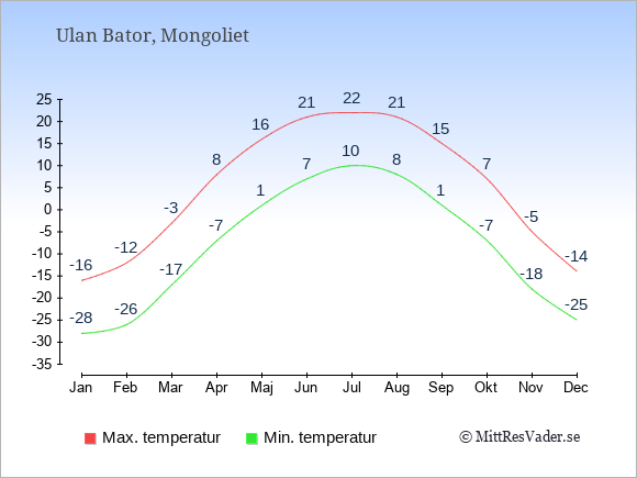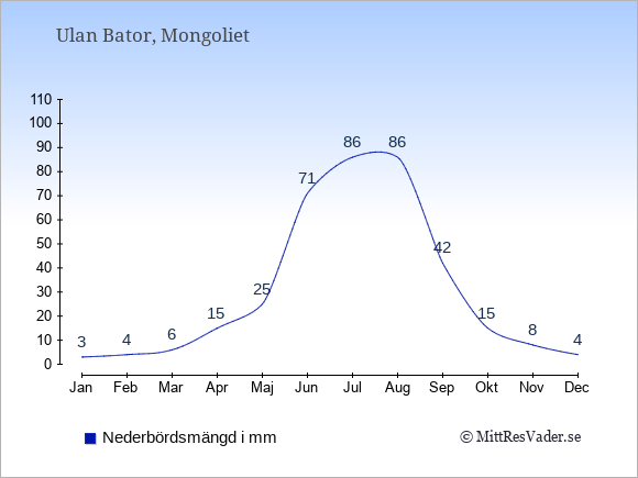 Se även vädret i Mongoliet året runt uten klimatuppgifter för Stockholm.