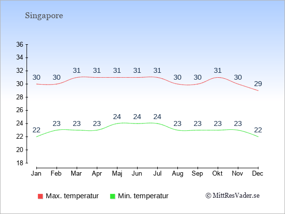 Se även vädret i Singapore året runt uten klimatuppgifter för Stockholm.
