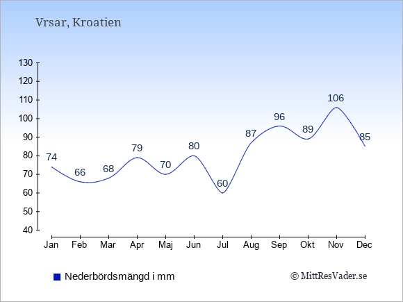 Se klimatdata för Vrsar jämfört med klimatet i Sverige.