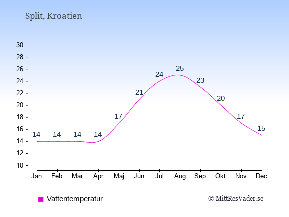För att se hur vädret i Split skiljer sig från vädret hemma, kan du också jämföra siffrorna måned för måned med motsvarande siffror för Sverige under samma period här: Splits klimat.
