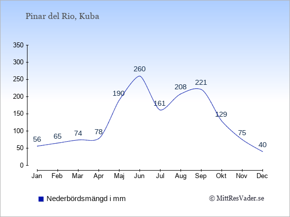 På denna sida kan du få en överblick över de statistiska klimatuppgifterna för Pinar del Rio månad för månad jämfört med klimatet i Stockholm. Information om det historiska klimatet kan du använda för att planera din semester och hitta den bästa tiden att resa till Pinar del Rio på.