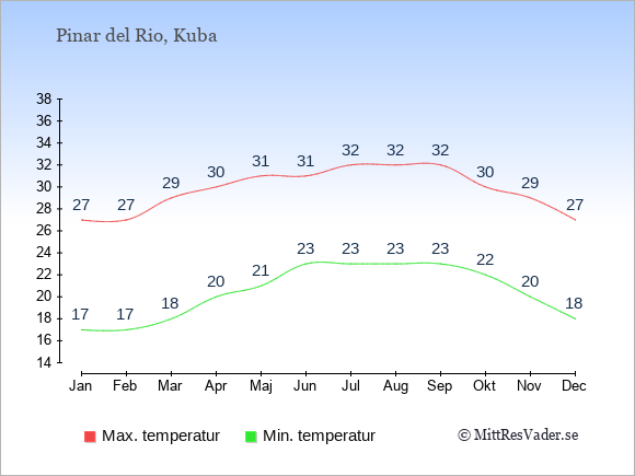 Klimatdata för Pinar del Rio, Kuba