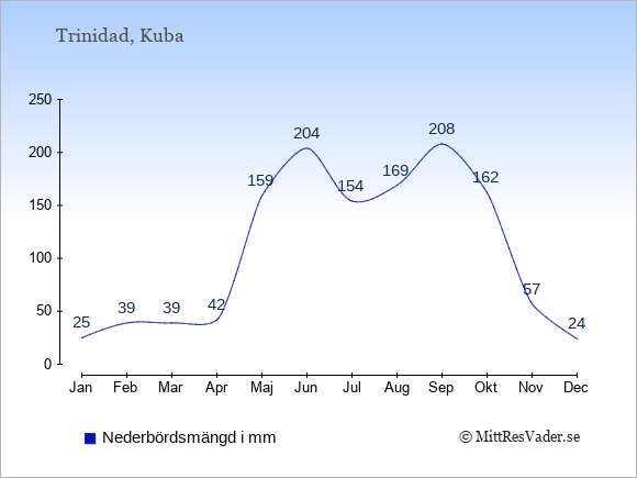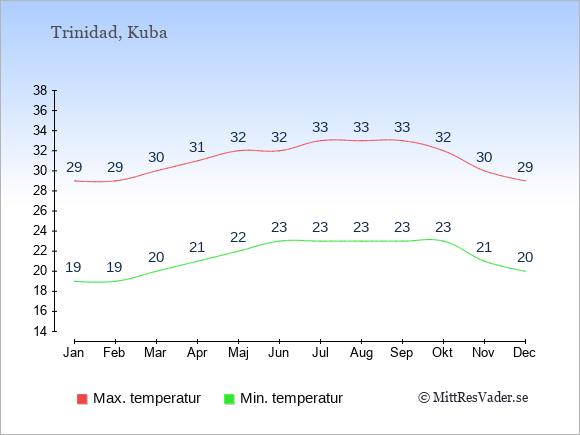 Genomsnittligt väder i Trinidad, Kuba